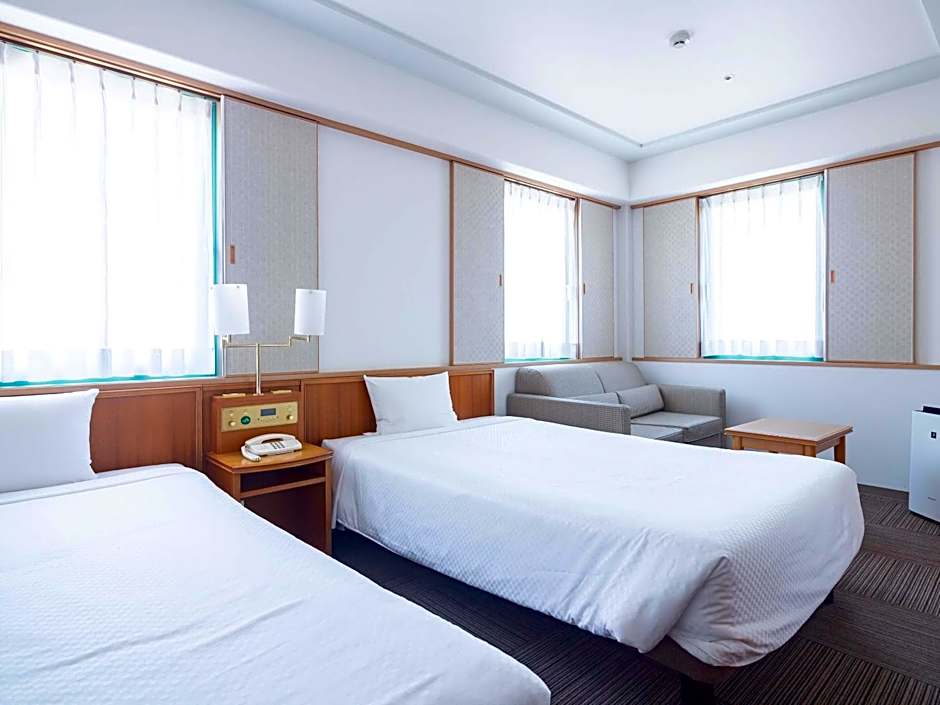 This air-conditioned room is furnished with 2 small double beds (49 in wide) and 1 sofa bed. The room features carpeted floors and has an electric kettle with complimentary coffee and tea bags. Nightwear, slippers, a hairdryer and toothbrush sets are provided.